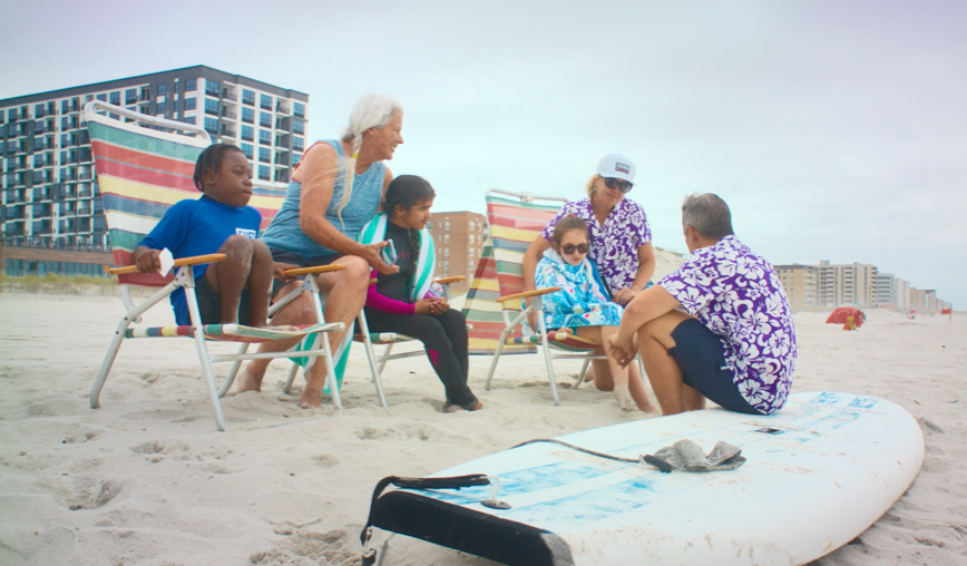 It was a no-brainer to surf with Skudin Surf and Surf For All for our surfing adventures. We also knew we wanted to surf with the Carlo family. Anne Carlo lives on Long Island with her daughter Shravonie, who also has Rett syndrome. Anne adopted Shravonie when she was 5 and fosters other children with special needs. We met her and her family at a surf camp through Surf For All and knew they’d be down for adventuring. The sheer randomness of meeting another family coping with Rett syndrome at a surfing event on Long Island let us know these were our people.